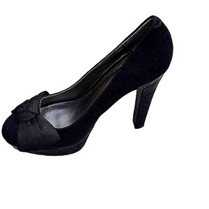Guess 7.5 Platform Suede Black Bow Pumps Heels Retro