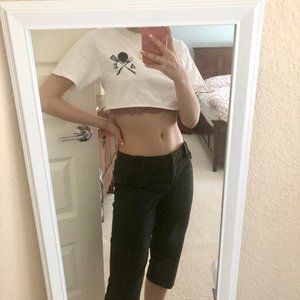 Super RARE Guess vintage plaid capri pants! White and Gold lined on black pants. Super chic and stylish!