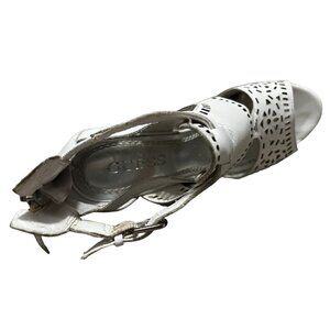 Guess Agenta White Leather Wooden Wedge Heels Sz 6.5 Womens Open Toe Ankle