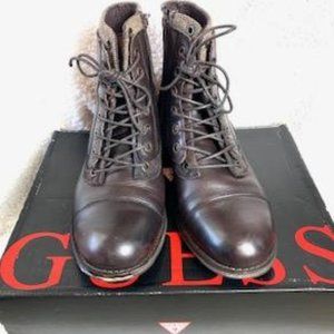 Guess Men’s Alfie Ankle Boots Leather Upper Zipper Closure Round Toe
