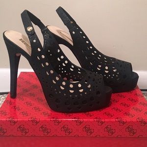 Guess Almirra 2 Black Platform Heel - Sz 7 - New