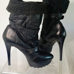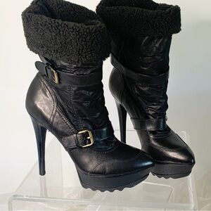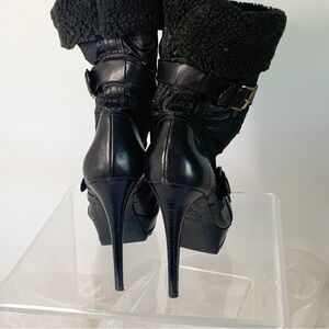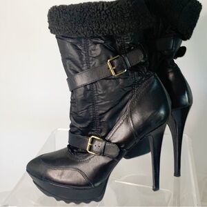 Guess Ankle Buckle Black Biker Style Stiletto Heel Boots Size 8