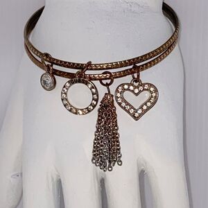 Guess Antique Style 2 Bangle Charm Bracelet Heart & Circle Rhinestone Tassle