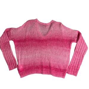 Guess Ariane V-Neck Loose Knit Metallic Pink Ombre Sweater - Size Medium