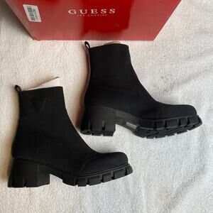 GUESS GFARSAN Chunky Knit Ankle Boots Womens 8 Black Sock Boot Y2K Grungecore