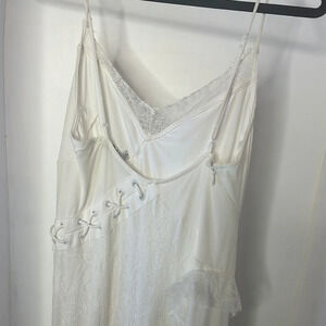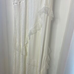 This Guess sundress features a sleeveless design with spaghetti straps and an asymmetrical tiered skirt, perfect for a bride or wedding guest. The white and cream hues add a touch of elegance, while the flowing silhouette offers a romantic and graceful look.