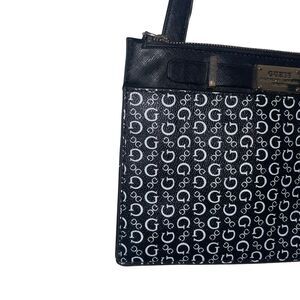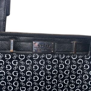 * G-Print Black and White Guess Brand Logo Print Leather Crossbody Featuring Silver Hardware and a Fun Cheetah Print Interior