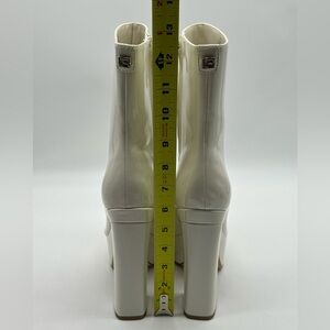 Guess BYRA Women’s Platform Block Heel Ankle Boots Ivory Patent Size 10M NWB