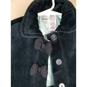 Guess Baby Velvet Coat Black with Bows. Snap Closure. Lining is light blue. Size 18m. Condition is "New with tags".
