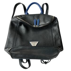 Guess Backpack Black Blue Pebbled Leather Silver Metal Logo Bag 10"x11.75"x4"