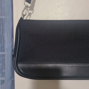 Has a faux leather bottom, subtle "G" logo print, a non-adjustable strap, 1 big zip closure, and 1 zip pocket inside.