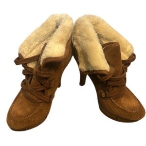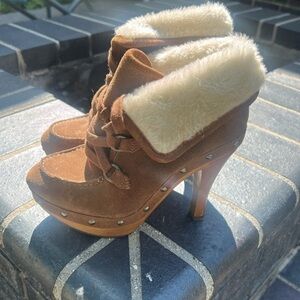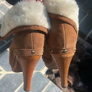 Guess Beautiful Wooden Shearling Fur Suede Platform Heels