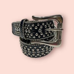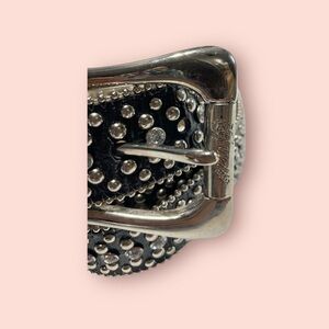 Y2k Guess Belt XL Black Faux Leather Studded Rhinestone Cowboy Crystal Fairy 90s Synthetic Leather Studded Rhinestone Style 947034