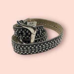 Guess Belt Black Leather Rhinestone Silver Studded 46” Long 1.5" Wide