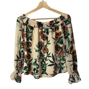 Guess Bethany Cream Floral Off Shoulder Trumpet Sleeve Blouse S