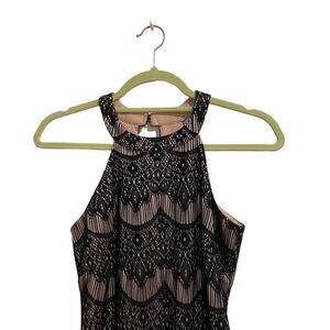 Size 0 black sleeveless lace mini sheath dress by Guess in excellent preowned condition.