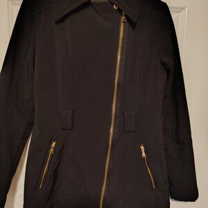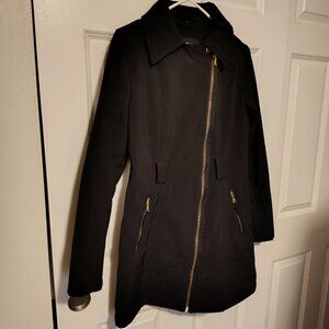 Guess Black Asymmetrical Zip Black MOTO Fitted Jacket Pea Coat Size Small