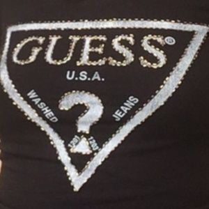 Guess Black Beaded Iconic Logo Tee like Revolve