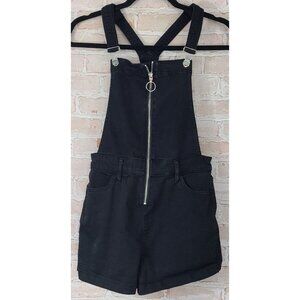 Guess Black Denim Jean Bib Overall Shorts Zip Up Stretch Women's Size 29