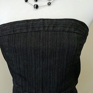 GUESS Size 5 Black Denim strapless stretchy denim dress with front pleats and hidden side pockets. Back zipper.