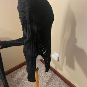 Guess Black Distressed V-Neck Sweater Sz XS