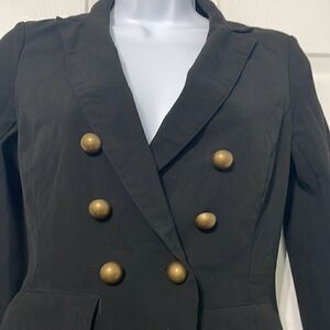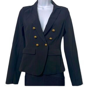 Guess Black Double Breasted Fitted Blazer with Gold Button Detail Size XS