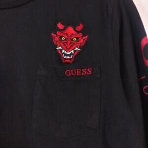 Guess Black Embroidered Westin Devil Long Sleeve Crew Neck Size M
