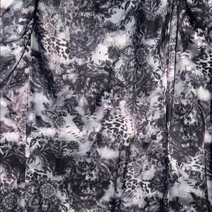 Cozy and Chic black leather jacket with outer fleece patches, made by Guess. Features stylish patterned lining. Perfect for adding edge to any outfit. GUC— Size Small.