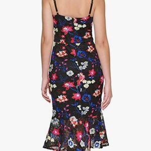 Guess Black Floral Midi Dress Embriodered Lace Size 14