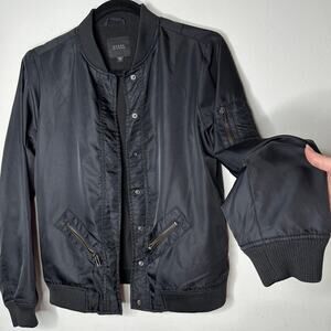 Guess Black Front Snap Bomber Jacket Zip Front & Sleeve Pockets XS