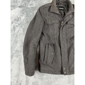 Guess Black Herringbone Wool Blend Women's S/P Snap Front Lined Winter Coat