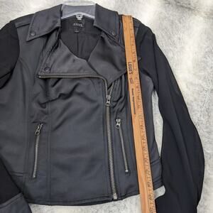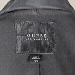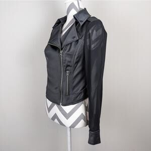 Guess Black Jacket Sheer Sleeve Satin Look Cropped Moto Extra Small XS Y2K
