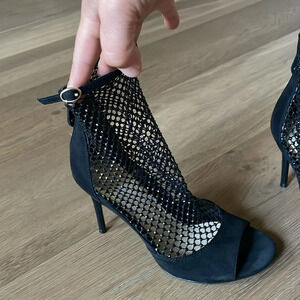 Guess Black Kadre2 Rhinestone Mesh Bootie Pump Heels Size 8