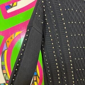 Guess, Black Knit Pullover with Gold Bead Details. Size Medium. Good used cond!
