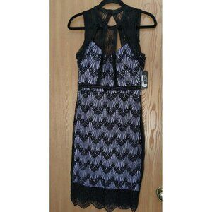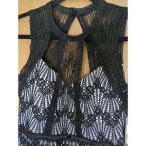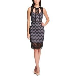 Guess Black Lace Cut Out Sleeveless Halter Sheath Dress Size 6 Lavender Underlay