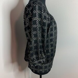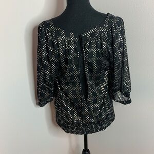 Guess Black & Metallic Gold Sheer Blouse Top Surplice V Shaped Open Back