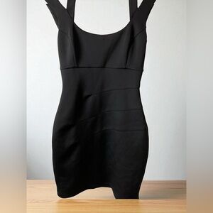 Chic black mini dress by Guess. Features a bodycon fit. Ideal for stylish outings.
