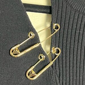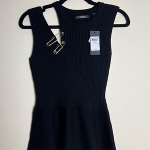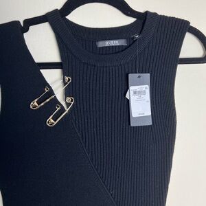 Guess Black Peplum Cut Out Tank Top Ribbed Knit Sweater Safety-pin detail XS