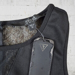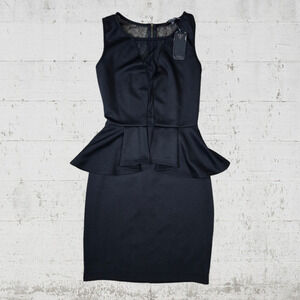 Guess Black Peplum Sleeveless Mesh USA Made Bodycon Classic Mini Dress Size XS