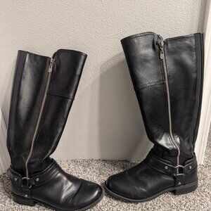 Classic black riding boots with inside full length zipper. Used but in good condition aside from scuffs on both inside toes.