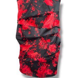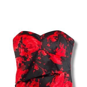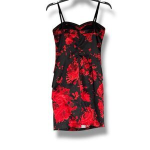 Guess Black Satin Dress Red Rose Print Removable Straps Sweetheart Neckline Sz 0