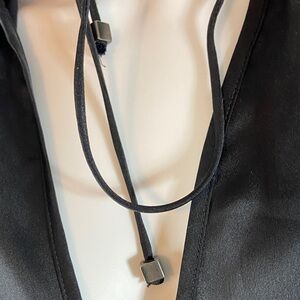 Guess Black Satin Tie Keyhole Blouse Lace Sleeves Large L Romantic shirt top