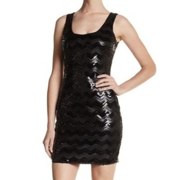 Guess Black Sequin Chevron Pattern Sleeveless Bodycon Dress 8