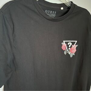 Guess Black Short Sleeve Tee with Logo and Red Roses Graphic Size Large EUC