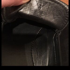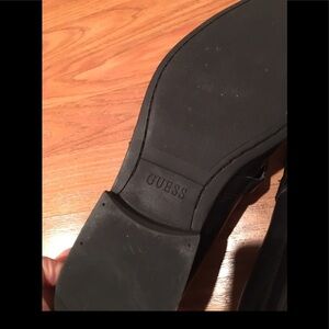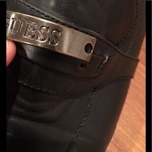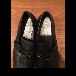 Guess Black Slip On Dress Shoes 9 Never been worn, no box, nothing wrong just missing snap on one shoe, a little stretch from store, no trades