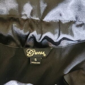 Elegant black strapless dress by Guess. Features a sleek design with a bow accent. Perfect for evening wear.