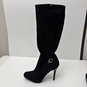 Guess Black Suede Knee High Stretchy Slouchy Stiletto Heel Boots Size 7.5