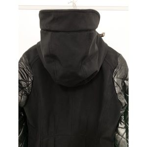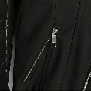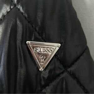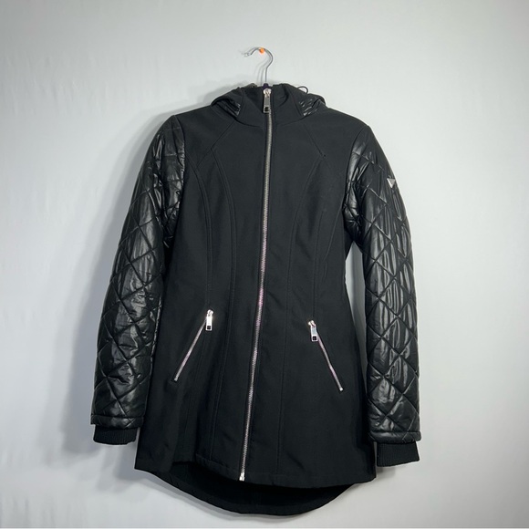 Guess Black Water Resistant Faux Fur Hooded Diamond Quilted Puffer Fitted moto Coat High Low Hi Lo Size small