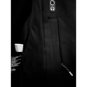 Style: moto, fitted, detachable hood, water resistant, wind resistant, light weight, soft shell, hi low, pockets, zippers