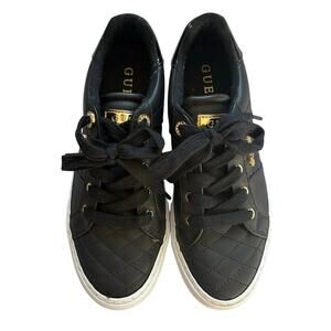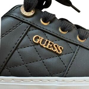Elevate your footwear collection with these Guess Black, White & Gold Sneakers in size 6.5! These stylish sneakers feature a classic black upper paired with crisp white soles and eye-catching gold accents, creating the perfect balance of sporty charm and chic sophistication. The gold details add just the right amount of shine, making them a standout choice for everyday wear or casual outings where you want to turn heads.